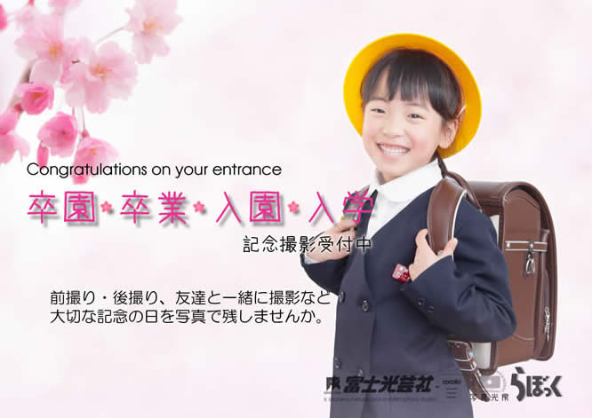 入学写真は、新しい制服やランドセルでの撮影や家族揃っての撮影もオススメしています!