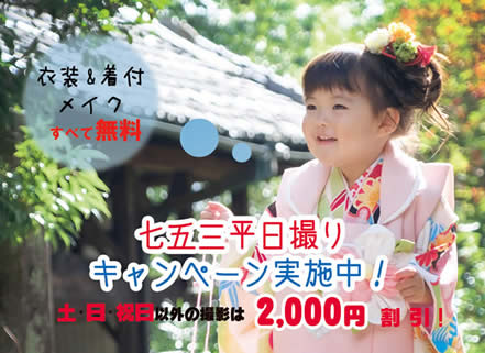 さて、今年の前撮りキャンペーンは平日割引キャンペーンとして「10月11月の休日以外は2,000円割引キャンペーン」です!
