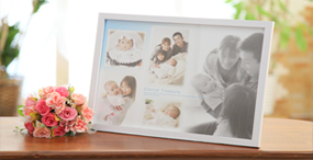 クリスタル加工を施した24×35㎝の美しいアルバムです。 6カット入り、お名前生年月日なども入れる事も可能です。